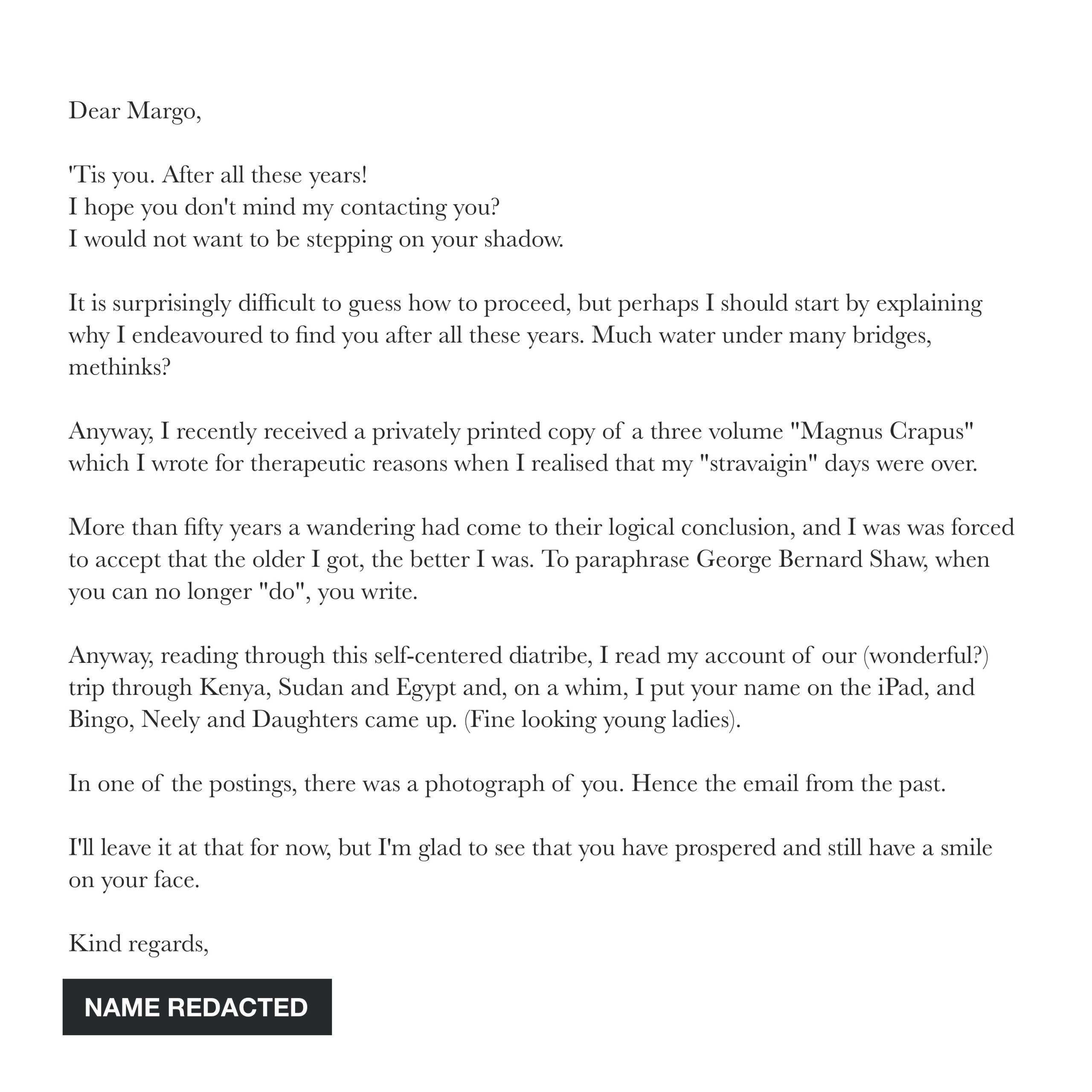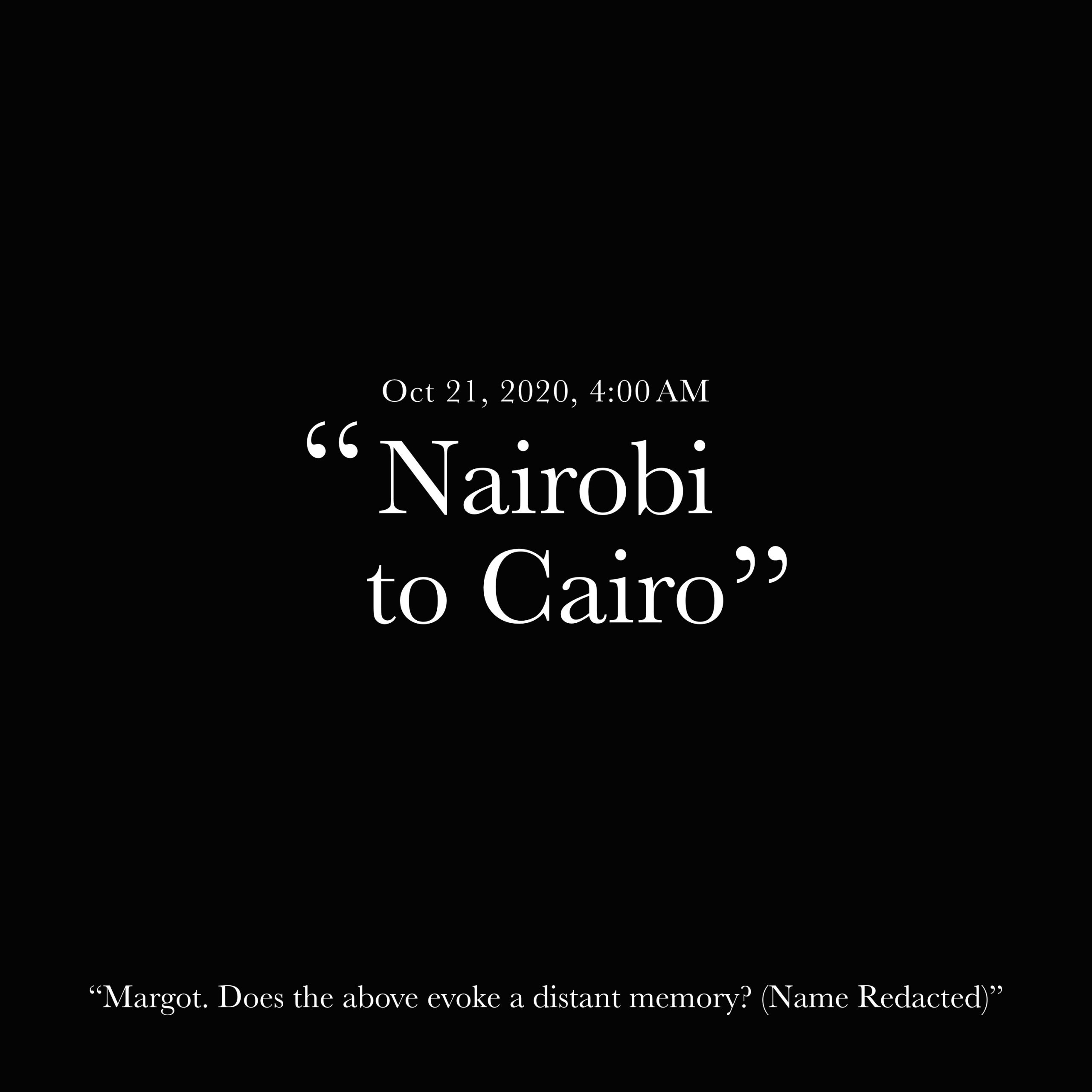 On Tuesday October 20, 2020 at 4am EST, a letter titled “Nairobi to Cairo” arrived at my office, addressed to me.